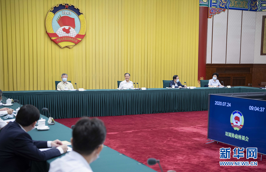 7月24日,十三屆全國政協第38次雙周協商座談會在北京召開。中共中央政治局常委、全國政協主席汪洋主持會議。 新華社記者 李濤 攝