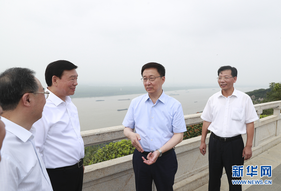 這是8月21日,韓正在南京幕燕濱江風貌區,考察幕燕風光帶綜合整治和入江支流水環境治理情況。 新華社記者 丁海濤 攝