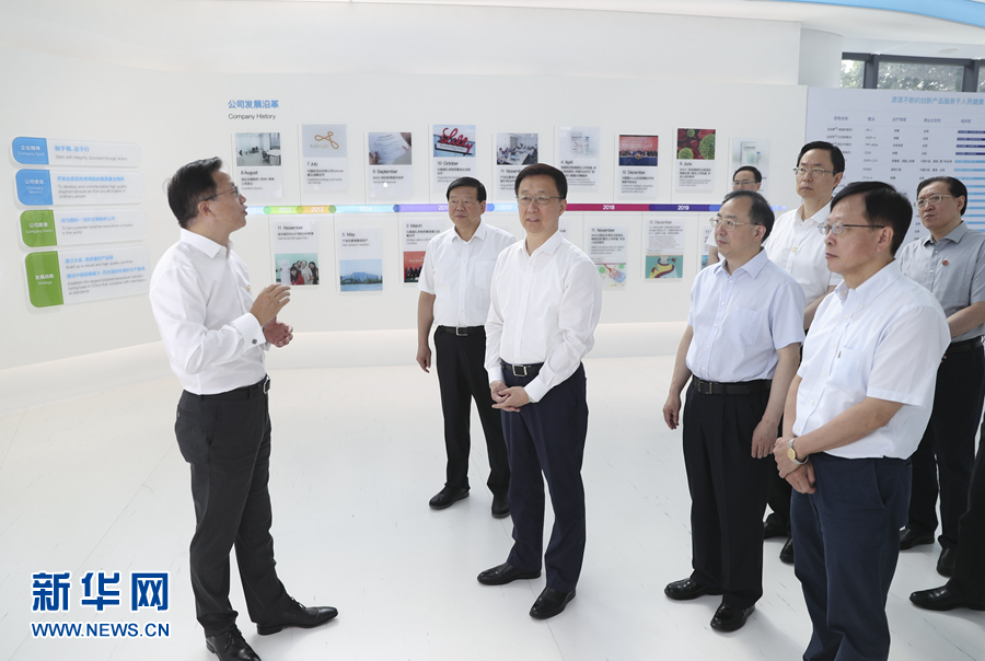 8月21日至23日,中共中央政治局常委、國務院副總理韓正在江蘇南京、蘇州、無錫調研。這是8月22日,韓正在位于蘇州的信達生物制藥(蘇州)有限公司,考察企業研發和生產經營情況。 新華社記者 丁海濤 攝