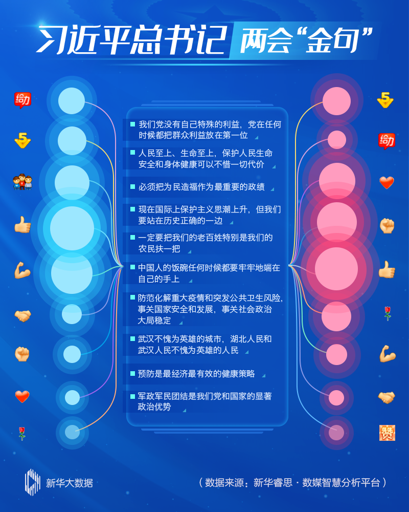 總書記飽含深情的話語一經發出,立刻通過網絡傳導觸及每一個網民的情感神經,引發大量情感共鳴。兩會期間,新華睿思持續追蹤相關數據,并對網民的情緒變化和留言進行集納分析。