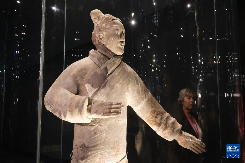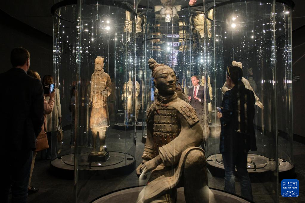 3月28日,观众在西班牙阿利坎特参观“中国秦汉文明的遗产”展。新华社记者 孟鼎博 摄
