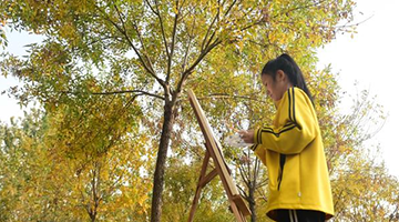 当日,十竹斋木版水印艺术作品展在暨南大学广州石牌校区举行。国家非遗项目木版水印技艺代表性传承人魏立中在展览现场为学生导赏、授课,并指导学生体验木版水印手作的乐趣。