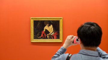 12月10日,观众在参观文艺复兴艺术作品(右)与中国古代绘画作品。