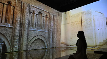 6月19日,观众参观由傣族錾刻工艺制作的银编錾刻系列配饰《云中之城》。
