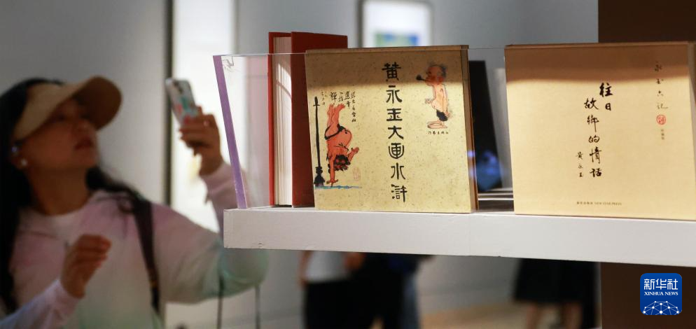 6月25日,参观者在“如此漫长 如此浓郁——黄永玉新作展”上观看黄永玉的画册。