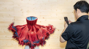 7月4日 ,参观者在沉浸式互动体验区观展。