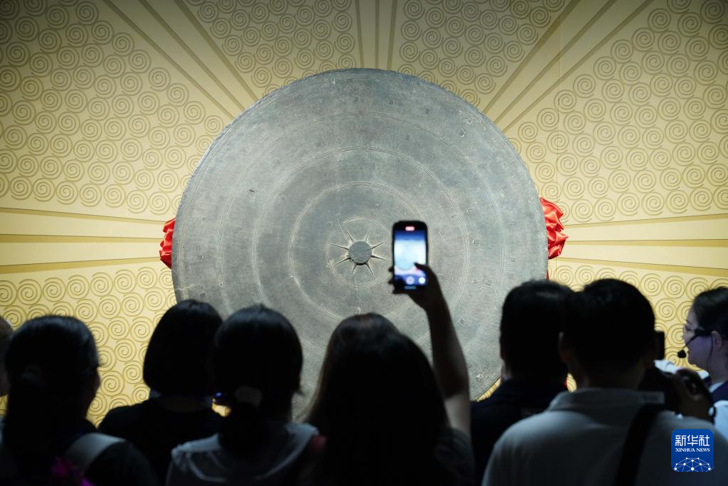 8月24日,人们在位于南宁的广西民族博物馆“壮族文化展”参观镇馆之宝——云雷纹大铜鼓。