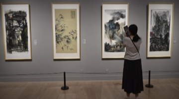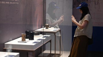 9月12日,观众拍摄印度诗人泰戈尔为梅兰芳书写的团扇。
