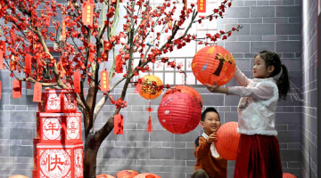 春节临近,在甘肃省张掖市甘州区甘州府城景区内,36岁的冰雕师赵浩和他的团队伙伴挥舞着工具,制作冰雕,为冰雕展做准备。
