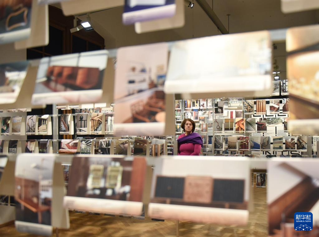 2月19日,一名观众在奥地利维也纳的应用艺术博物馆内参观不同风格建筑的照片。
