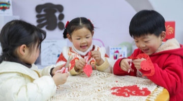 2月19日,柯翔祥(前)在位于德清乾元镇的“缂金堂”内给乾元镇清溪小学的学生上“开学第一课”。