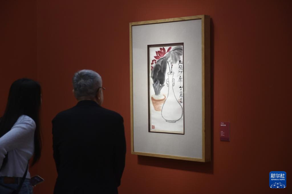 8月25日,观众在中国美术馆观看齐白石创作的《和平万年》。