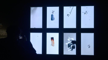 1月24日,游客在观看主题灯饰。