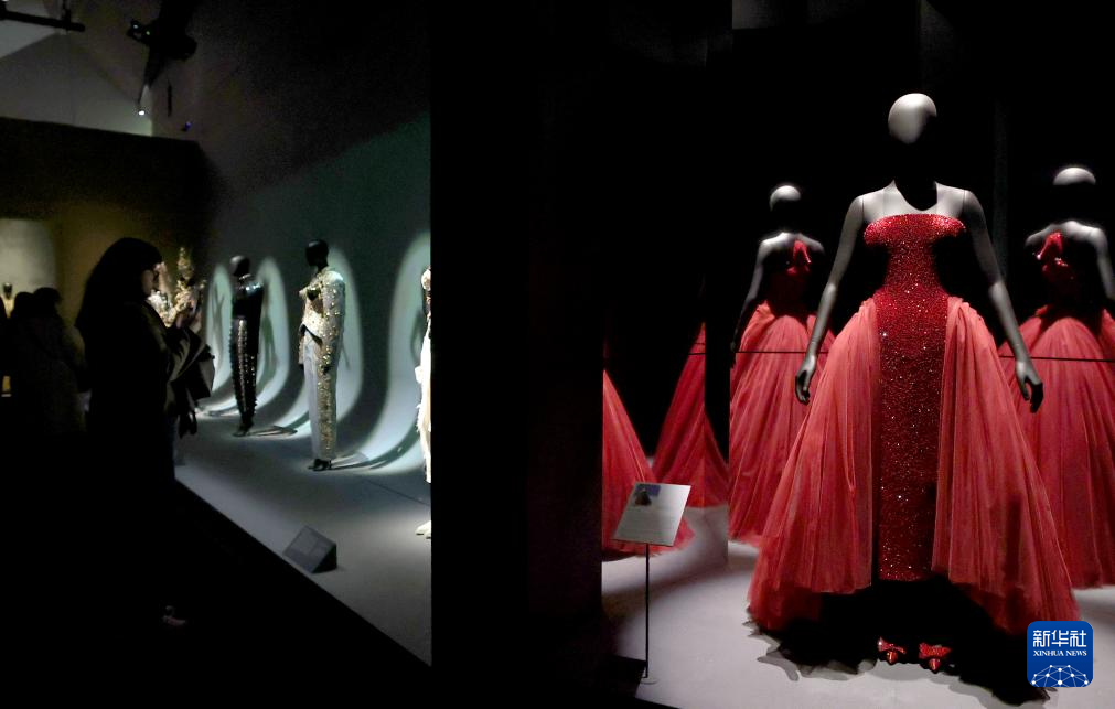 这是3月30日在英国伦敦维多利亚与阿尔伯特博物馆拍摄的“夏帕瑞丽:当时尚成为艺术”展览现场。
