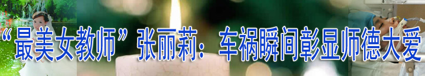 車(chē)禍瞬間挽救學(xué)生導(dǎo)致高位截癱的黑龍江省29歲女教師張麗莉,被網(wǎng)友稱(chēng)贊為“最美女教師”。連日來(lái),張麗莉的感人事跡激發(fā)起社會(huì)各界的愛(ài)心傳遞,舍己為人、挺身向前的奉獻(xiàn)精神正成為中國(guó)年輕一代道德價(jià)值體系中的火炬和航標(biāo)。 張麗莉,女,1983年生,大學(xué)本科,黑龍江省佳木斯市第十九中學(xué)的語(yǔ)文教師。2006年,她從大慶師范學(xué)院文學(xué)院03級(jí)本科班畢業(yè)后,分配到佳木斯市第十九中學(xué)任教。她在2012年5月8日的交通事故中,為救學(xué)生而受重傷,致使雙腿截肢。2012年5月15日、5月16日,張麗莉獲“全國(guó)五一勞動(dòng)獎(jiǎng)?wù)隆薄⑷珖?guó)三八紅旗手等榮譽(yù)稱(chēng)號(hào)。