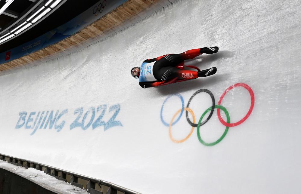 中国选手范铎耀在北京2022年冬奥会男子单人雪橇项目比赛中。新华社记者 贺长山 摄