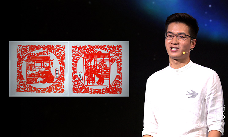 作為一個90后的剪紙傳承人,就要剪一些有新時代特點的剪紙作品。我擅長的是即興創作、脫稿剪紙,速度就是快。我們會了那些傳統的圖案之外,還要能夠看到任何的物體,或者別人給我一個命題就能即時創作。搞剪紙創作一定要豐富自己的知識面,這樣腦海中才會有更多的畫面跟場景。我感覺剪紙是讓我用紙和剪刀在對話,把我的情感通過紙釋放出來。其實是一種靜修,或者自我的享受。我以后要開展的工作,或許是要承擔著怎樣讓剪紙在00后、10后、20后這些年輕一代的未來人,怎么能認識我們這種傳統藝術,這是我一生要去做的事情。