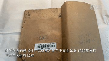 紅色封面的是《共產(chǎn)黨宣言》首個中文全譯本,由陳望道翻譯,于1920年發(fā)行,目前全國僅有12本。