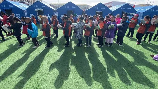 當日,青海省果洛藏族自治州瑪多縣地震災區中小學全面復課,來自瑪多縣民族寄宿制中學的八年級學生曲邁卓瑪與870多位同學一起,在帳篷學校迎來了復課。