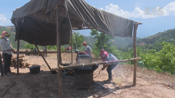 人們在臨時(shí)搭建的簡易廚房忙碌