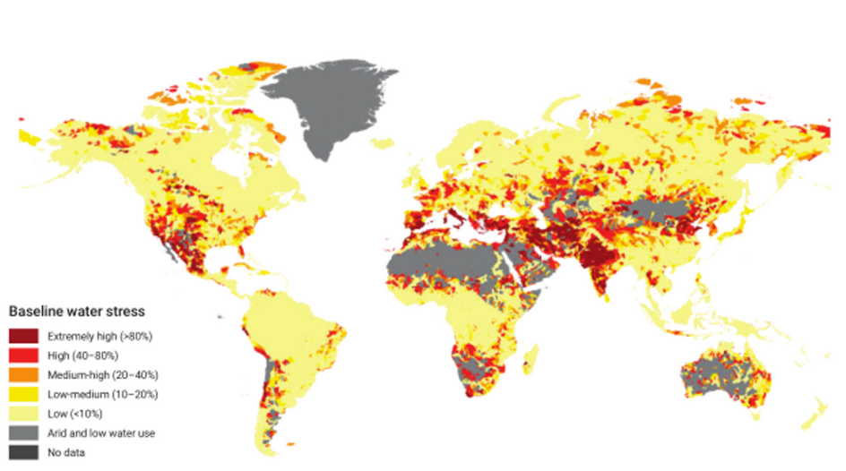 ??? 聯合國水機制(UN-water)在2020年的世界水日發布了《世界水發展報告》。報告顯示,全球用水量在過去的100年里增長了6倍,水資源的需求正在以每年1%的速度增長;并根據世界各地區地表水、地下水抽取的水量與可用總水量的比值,制作了全球年度基準水壓力圖:目前全球有 36 億人口(將近全球一半的人口)居住在缺水地區。到21世紀中葉,將有超過20億人生活在水資源嚴重短缺的國家,約40億人每年至少有一個月的時間遭受嚴重缺水的困擾,且將會有22個國家面臨嚴重的水壓力風險。