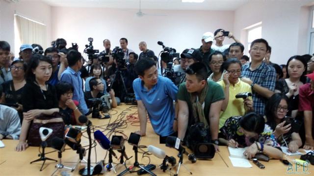 圖為設在富國島的越南搜救前線指揮辦公室,各國記者在等待新聞發布會的召開。