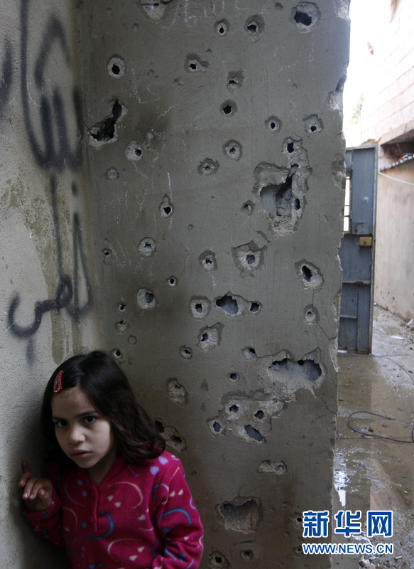 3月23日,黎巴嫩首都貝魯特槍戰(zhàn)現(xiàn)場,一黎巴嫩女童在躲避槍戰(zhàn)。