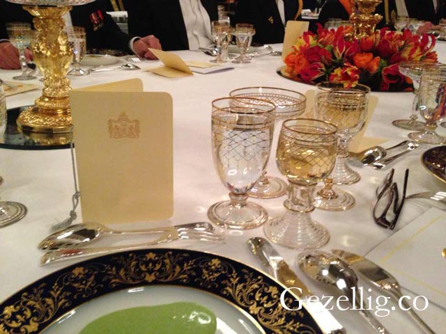 最后再來展示下國(guó)宴的餐具,每一件都是古董,每件上都有皇室的印記,細(xì)數(shù)一下,本次餐具一共有6件刀叉勺子,都是按照菜的順序擺放的。(圖片來源:荷蘭聯(lián)合時(shí)報(bào))