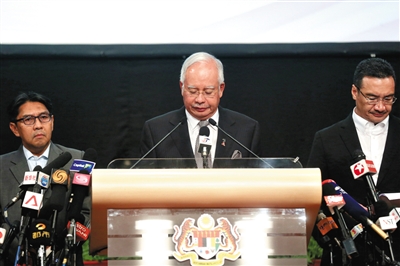 馬來西亞總理納吉布在吉隆坡召開緊急發布會。新華社記者 王申 攝