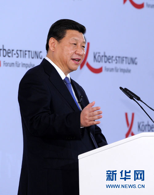 ????新華網(wǎng)柏林3月28日電(記者 班瑋 徐劍梅 何夢舒)當?shù)貢r間3月28日下午,國家主席習近平應德國科爾伯基金會邀請,在柏林發(fā)表重要演講,闡述中國和平發(fā)展道路和獨立自主的和平外交政策,強調中國走和平發(fā)展道路是中華民族熱愛和平的文化傳統(tǒng)的繼承和發(fā)揚,是中國人民從自身經(jīng)歷中形成的自覺選擇,是思想自信和實踐自覺的有機統(tǒng)一。中國將堅定不移走和平發(fā)展道路,也真誠希望世界各國都走和平發(fā)展道路。