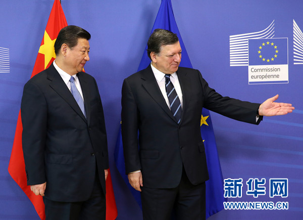 ????3月31日,國(guó)家主席習(xí)近平在比利時(shí)布魯塞爾會(huì)見(jiàn)歐盟委員會(huì)主席巴羅佐。 新華社記者 龐興雷 攝