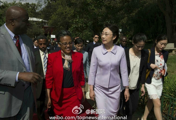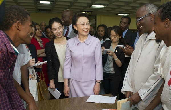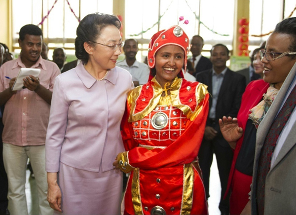 ????新華網(wǎng)北京5月6日電 據(jù)新華社“新國(guó)際”微博報(bào)道,李克強(qiáng)總理夫人程虹5日在埃塞俄比亞總理夫人羅曼·塔斯法耶的陪同下參觀了亞的斯亞貝巴大學(xué),觀摩漢語(yǔ)授課,與學(xué)生們交流,觀看學(xué)生們的中國(guó)文化才藝展示,還捐贈(zèng)了書籍、計(jì)算機(jī)等物品。程虹說(shuō),你們是文化的紐帶,感謝你們對(duì)中國(guó)人民的情誼。你們對(duì)中國(guó)文化的熱愛(ài)感動(dòng)了我,也會(huì)感動(dòng)中國(guó)人民。