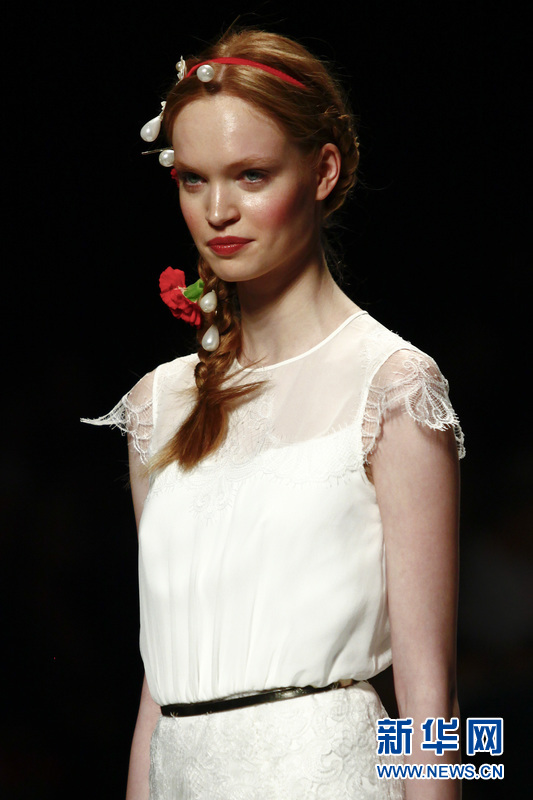 模特在T臺上展示西班牙品牌Victorio & Lucchino的婚紗。Victorio & Lucchino是來自西班牙塞維亞 (Sevilla)的兩位男服裝設計師的名字,Victorio和Lucchino同時也是西班牙本土知名時裝設計師組合之一。