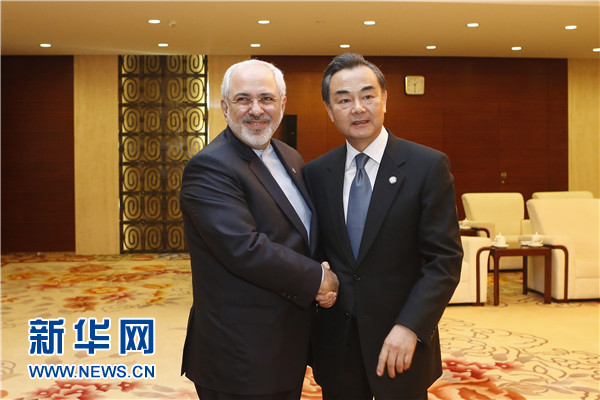 ????5月21日,中國(guó)外交部長(zhǎng)王毅在上海會(huì)見陪同伊朗總統(tǒng)魯哈尼訪華的伊朗外長(zhǎng)扎里夫。 新華社記者 張玉薇 攝