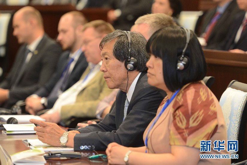 ????6月6日,在烏茲別克斯坦首都塔什干國(guó)際會(huì)議宮,會(huì)議現(xiàn)場(chǎng)。(沙達(dá)提 攝)