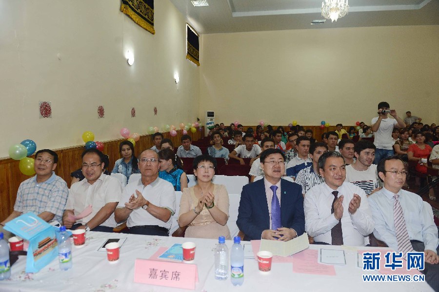6月9日,烏茲別克斯坦首都塔什干的烏世界語言大學禮堂活動現場。?