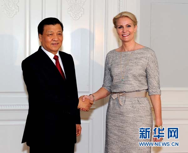 ??? 6月11日,正在丹麥進行正式訪問的中共中央政治局常委、中央書記處書記劉云山在哥本哈根會見丹麥首相托寧-施密特。 新華社記者 饒愛民 攝