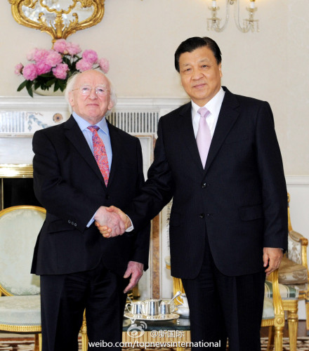 ??? 新華網(wǎng)北京6月18日電 據(jù)新華社“新國際”微博報道,中共中央政治局常委、中央書記處書記劉云山17日結束愛爾蘭之行。他在會見愛總統(tǒng)希金斯時說,中國與愛爾蘭雖相距遙遠,但在雙邊和國際事務中存在廣泛的共同利益,兩國關系成為不同幅員、制度、發(fā)展階段國家平等相待、友好合作的典范。