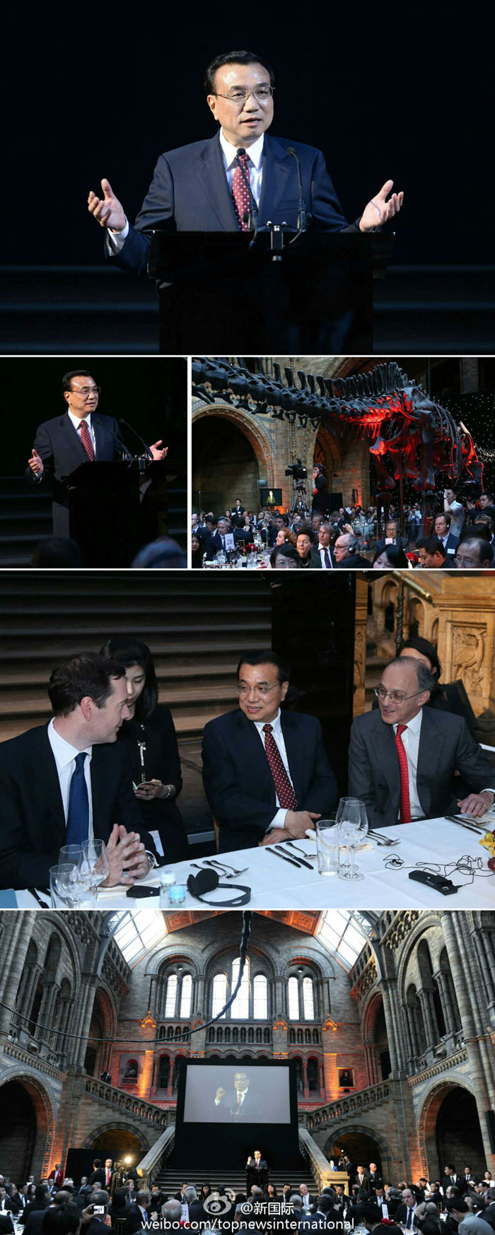 ??? 新華網北京6月18日電 據新華社“新國際”微博報道,李克強17日在倫敦的自然歷史博物館出席英中工商界歡迎晚宴并致辭。李克強說,訪英行程不到24小時已碩果累累。中英簽署多項政府間和商業協議,但這不是簡單的買賣關系,而是有質量、更深入的投資關系。中英合作不僅雙贏,并會走向第三方,讓世界受益。