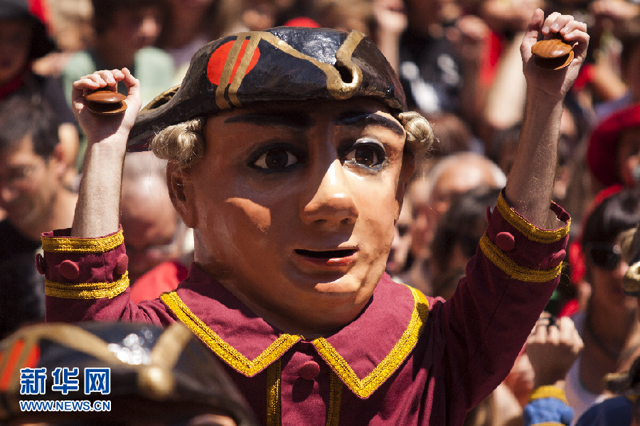 西班牙貝爾加(Berga)市的煙火節上,在人群中跳舞的大頭娃娃。