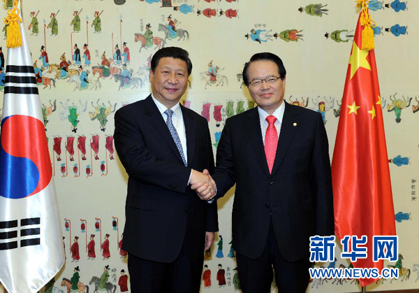 ????鄭義和表示,中國是韓國的好鄰居,韓方感謝中國堅定致力于維護半島和平穩定,支持朝鮮半島實現和平統一。習近平主席同樸槿惠總統就加強兩國合作達成許多重要共識,相信習近平主席這次訪問必將有力推動韓中關系邁上新臺階。韓國國會希望加強同中國全國人大交往,為促進韓中關系發展作出貢獻。實現東北亞持久和平,必須建立在對歷史的共同認識基礎上。韓國國會提議成立韓中日歷史研究共同委員會,交流對歷史問題的認識,樹立正確歷史觀。