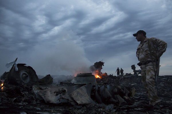 ??? 當(dāng)?shù)貢r間2014年7月17日,烏克蘭頓涅茨克地區(qū),馬來西亞航空公司波音777飛機墜毀現(xiàn)場。 圖片來源:美聯(lián)社
