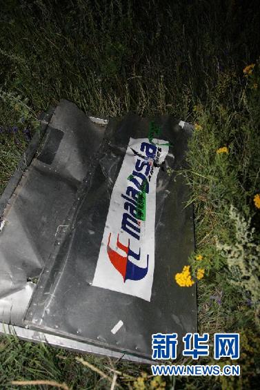 這是7月17日在烏克蘭東部地區拍攝的失事客機殘骸。 新華社發(亞歷山大·葉爾莫琴科攝)