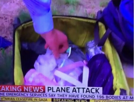 英國天空電視臺記者被發現在MH17墜毀現場亂翻死者行李