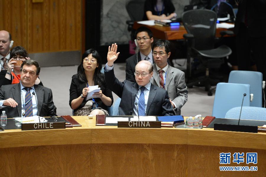 ??? 7月21日,在紐約聯合國總部,中國常駐聯合國代表劉結一(中)參加安理會就決議草案進行的表決。聯合國安理會21日通過決議,強烈譴責馬來西亞航空公司MH17航班墜毀事件,同時敦促各方充分配合對這一事件的國際調查。新華社記者牛曉雷攝
