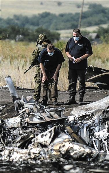 25日,烏克蘭頓涅茨克,調查人員在馬航墜機現(xiàn)場。