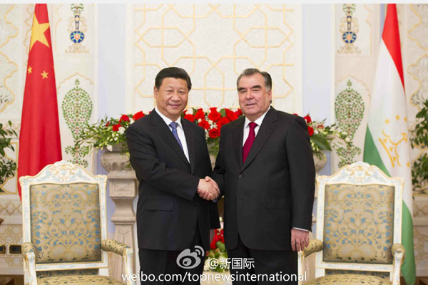 新華網北京9月13日電 據新華社“新國際”微博報道,習近平主席13日在杜尚別會見塔吉克斯坦總統拉赫蒙時說,貴國有句名言:“誰有幸做塔吉克人的客人,誰將受到主人最盛情的禮遇。”幾天來,我切身感受到了塔吉克斯坦人民的熱情好客。(黃敬文、馬占成)