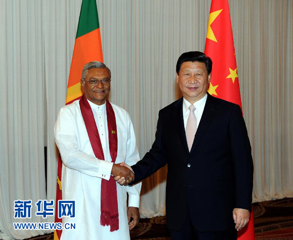 ????習近平強調,中方視斯里蘭卡為全天候的朋友和伙伴,感謝斯方一貫在臺灣、涉藏等問題上支持中方立場,支持斯方維護獨立、主權、領土完整的努力,將一如既往為斯里蘭卡經濟社會發展提供力所能及的幫助。新形勢下,中方愿同斯方在現有良好基礎上,以共同建設21世紀海上絲綢之路為契機,加強互利合作,擴大人文交流,不斷為兩國關系注入新動力、正能量。希望雙方加強立法機構及黨際交往,歡迎恰馬爾議長及更多斯里蘭卡議會成員訪華,加深相互了解和友誼。