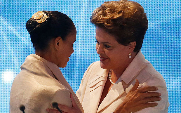 ????其實,席爾瓦的政治生涯也極具戲劇性并充滿意外。起先參與政治活動的她,后來又成了一名環境保護主義者;在擔任多年的國會議員后,她于2003年在盧拉政府中出任環境部長。2009年8月前,席爾瓦與羅塞夫同屬勞工黨;2010年,席爾瓦代表綠黨參選總統并落選。在今年的巴西總統選舉中,加入社會黨的席爾瓦本來是作為副總統競選人陪伴坎波斯,但由于坎波斯在8月份墜機身亡,席爾瓦在黨內被選為總統競選人。