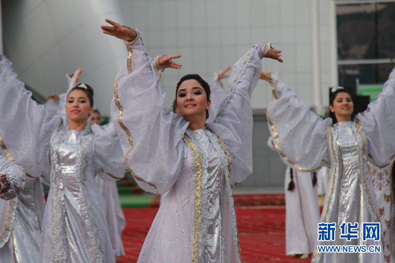 身著節日盛裝的土庫曼斯坦美女在跳舞 記者 盧敬利攝